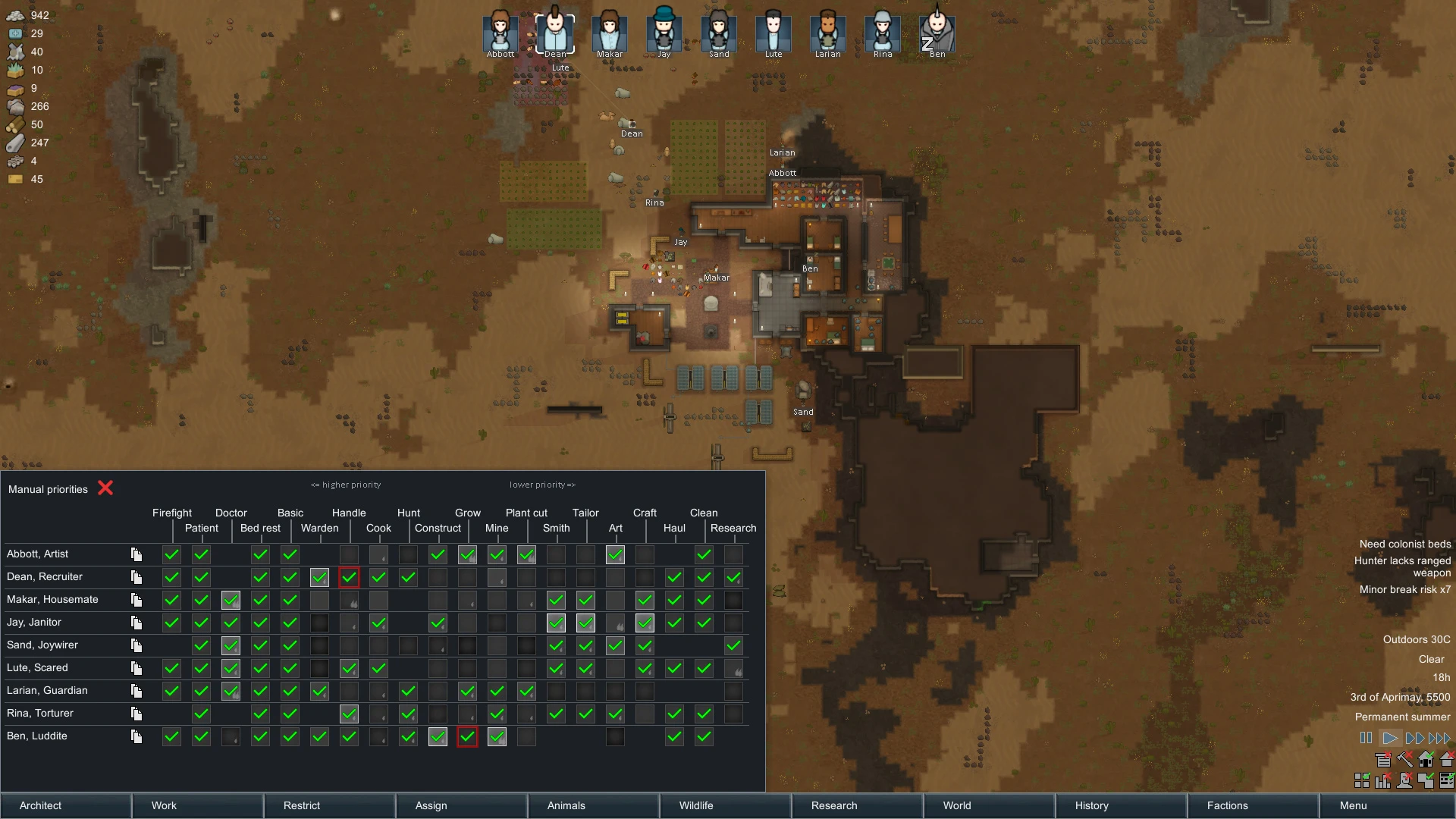 La rejugabilidad es su mayor fortaleza. En mis 750 horas de juego, cada partida fue distinta. En mi colonia más longeva, «Mike» y «Yoshi« se convirtieron en la piedra angular de la comunidad. «Mike» el líder de la colonia, parte de los colonos originales y el único que aun vive. «Yoshi«, un personaje rescatado en plena adolescencia que creció y terminó formando una familia dentro de la colonia, expandiendo su legado a través de generaciones. Sus creencias y valores se transformaron en la base de una religión que definió la manera en la que rescatan y aceptan a otros colonos. Historias como esta no están predefinidas en el juego, emergen naturalmente, haciendo que cada jugador viva su propio RimWorld.